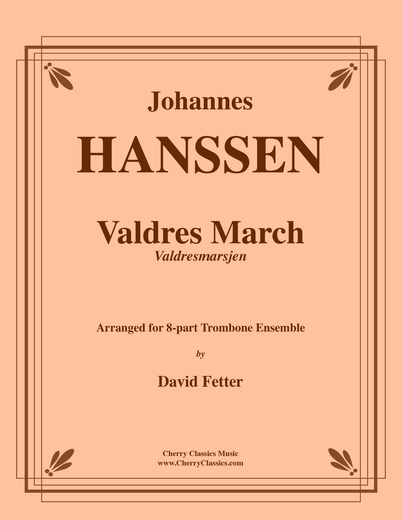 The Valdres March by Johannes Hanssen has been beautifully arranged by David Fetter for 8-part Trombone Ensemble. The march, composed in 1904 is based on the beautiful Valdres region in Norway between Oslo and Bergen which was adored by Hanssen.