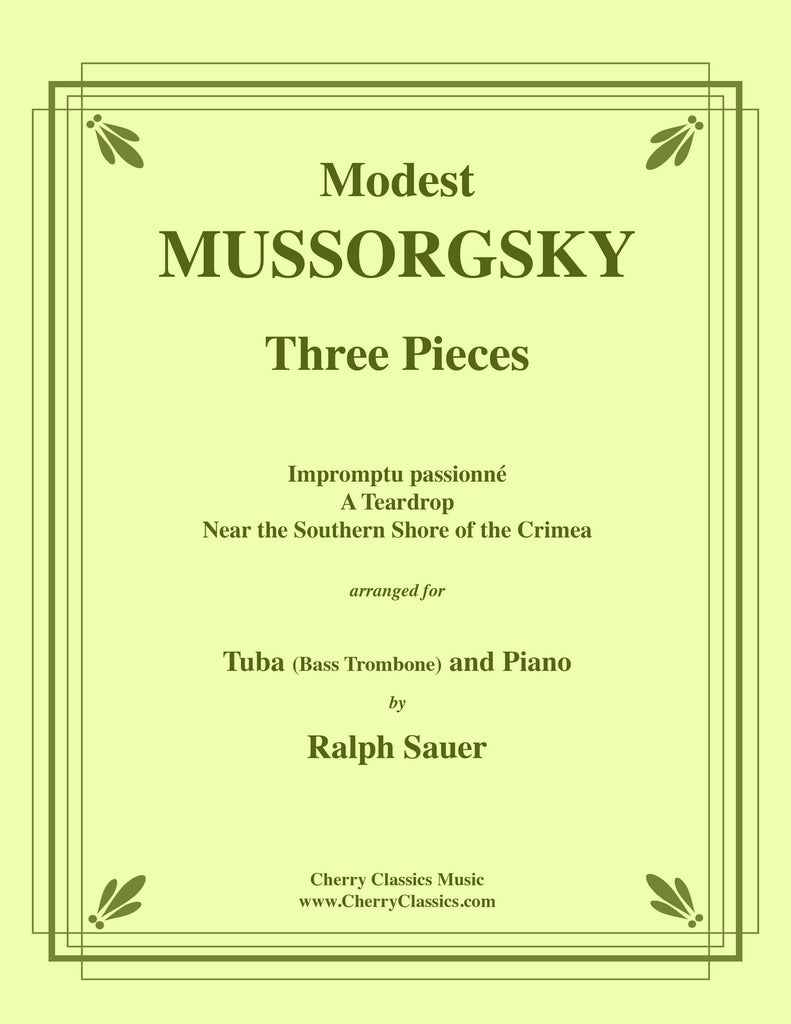 Ralph Sauer has compiled a set of Three Pieces for Tuba or Bass Trombone and Piano by Modest Mussorgsky. They are delightful, relatively unknown works originally for Piano, Impromptu passionné (Schumanesquely romantic) written very early on, A Teardrop (very sad) and Near the Southern Shore of the Crimea (a riotous, rhythmically passionate dance). The last two works were written towards the sad ending of his life.