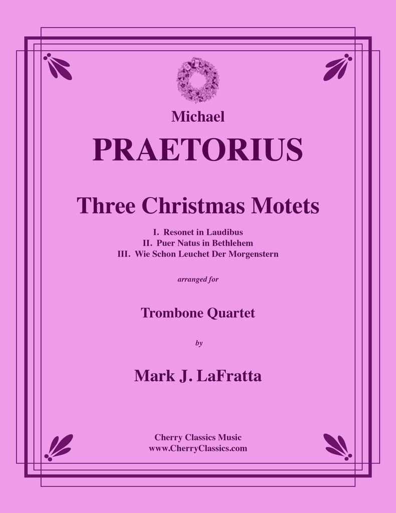 Mark LaFratta has beautifully arranged Three Christmas Motets for Trombone Quartet by Michael Praetorius. 17th Century composer Praetorius was quite prolific and the three motets are so lovely, they will fit in perfectly with your Christmas concert or service. The motets are titled:
