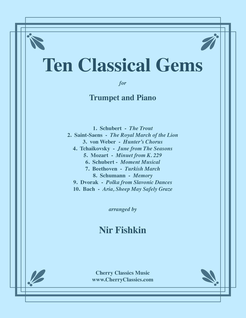 Nir Fishkin has beautifully arranged Ten Classical Gems for Trumpet and Piano. These popular masterpieces are perfect for the intermediate level young trumpeter and are a great way to learn the styles of the Baroque, Classical and Romantic repertoire. The works are: