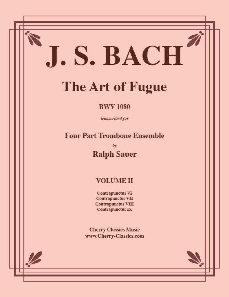 Bach's great monument, The Art of Fugue has been newly transcribed by Ralph Sauer for Four Part Trombone Ensemble. Volume 2 contains four Contrapuncti 6, 7, 8 and 9.